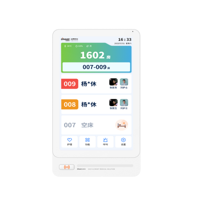 設(shè)置在病房門口的終端設(shè)備,主要用于顯示病房相關(guān)信息,內(nèi)置簡易醫(yī)護(hù)工作站,支持病房床位一覽、患者動態(tài)跟蹤、呼叫對講、增援求救等多種呼叫類型,信息齊全,及時響應(yīng)醫(yī)護(hù)需求,實現(xiàn)智能化醫(yī)護(hù)管理。